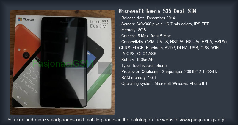 -> Microsoft Lumia 535 Dual SIM - Katalog - PasjonaciGSM