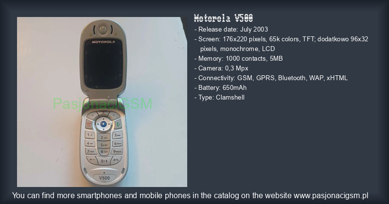 -> Motorola V500 - Katalog - PasjonaciGSM