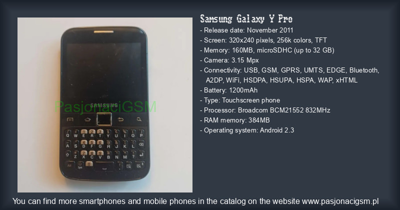 -> Samsung Galaxy Y Pro - Katalog - PasjonaciGSM