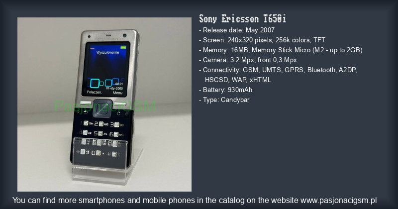 -> Sony Ericsson T650i - Katalog - PasjonaciGSM