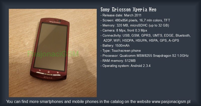 -> Sony Ericsson Xperia Neo - Katalog - PasjonaciGSM