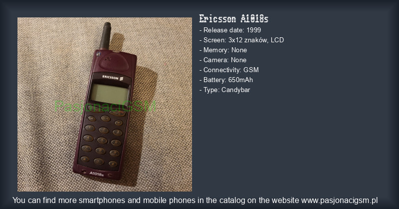-> Ericsson A1018s - Katalog - PasjonaciGSM