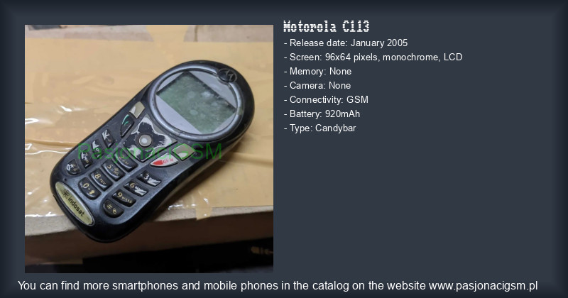 -> Motorola C113 - Katalog - PasjonaciGSM