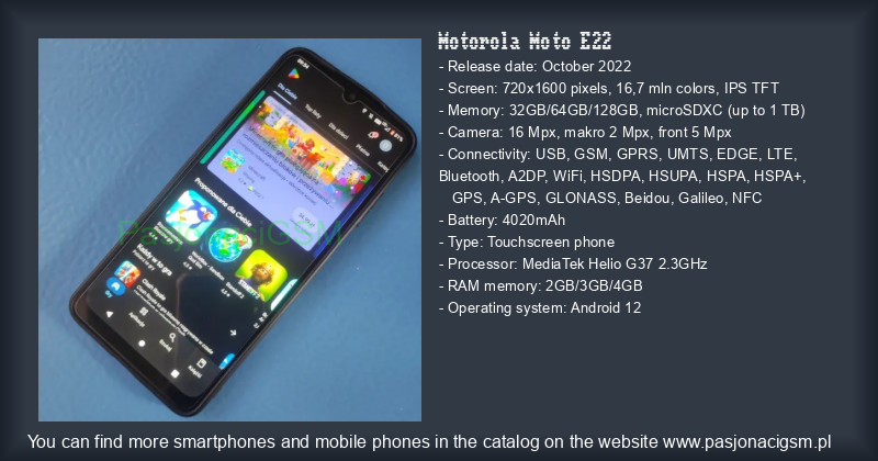 -> Motorola Moto E22 - Katalog - PasjonaciGSM