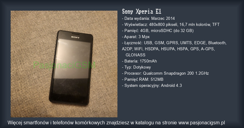 -> Sony Xperia E1 - Katalog - PasjonaciGSM