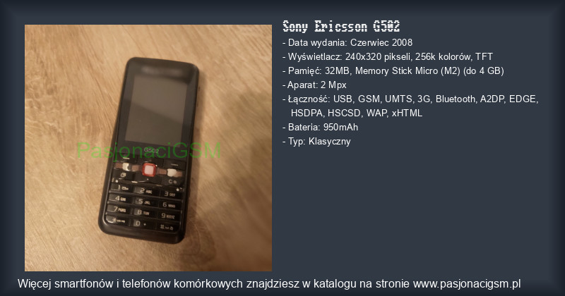 -> Sony Ericsson G502 - Katalog - PasjonaciGSM