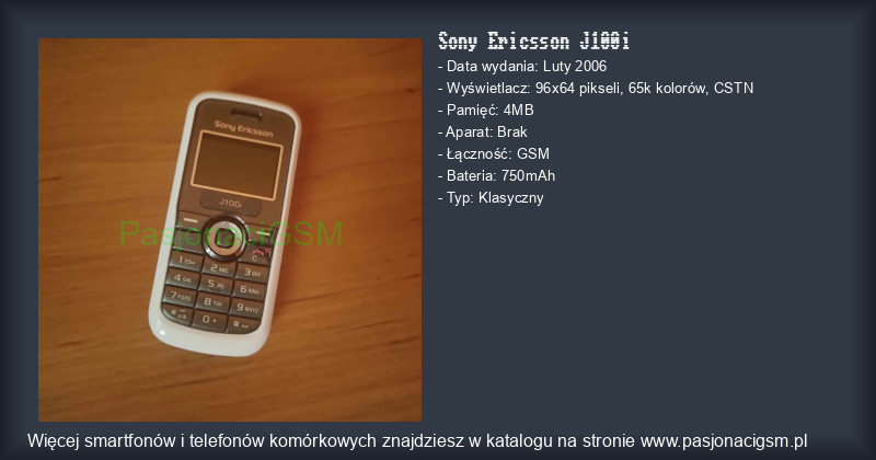 -> Sony Ericsson J100i - Katalog - PasjonaciGSM