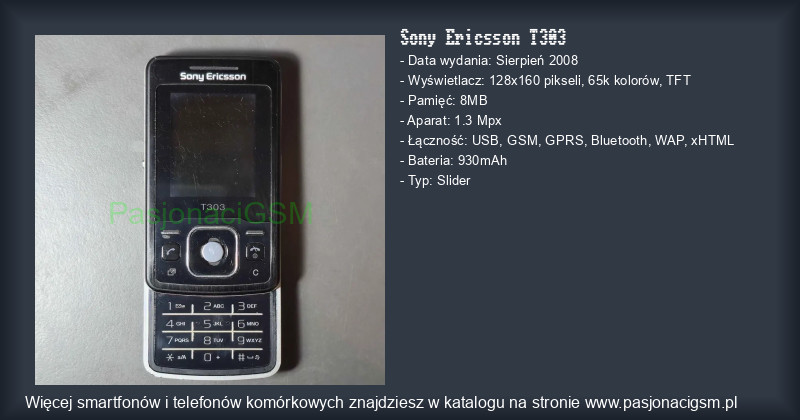-> Sony Ericsson T303 - Katalog - PasjonaciGSM