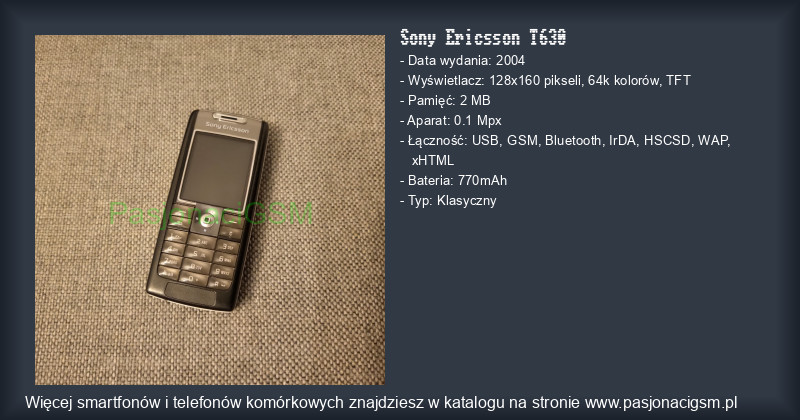 -> Sony Ericsson T630 - Katalog - PasjonaciGSM