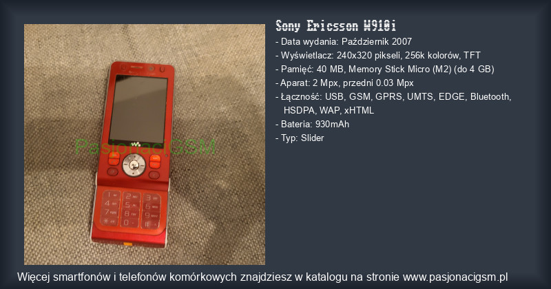 -> Sony Ericsson W910i - Katalog - PasjonaciGSM