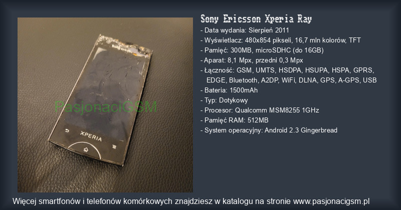 -> Sony Ericsson Xperia Ray - Katalog - PasjonaciGSM